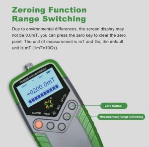 Rentang pengukuran : 0-2400mT (1mT=10Gs) 24000Gs